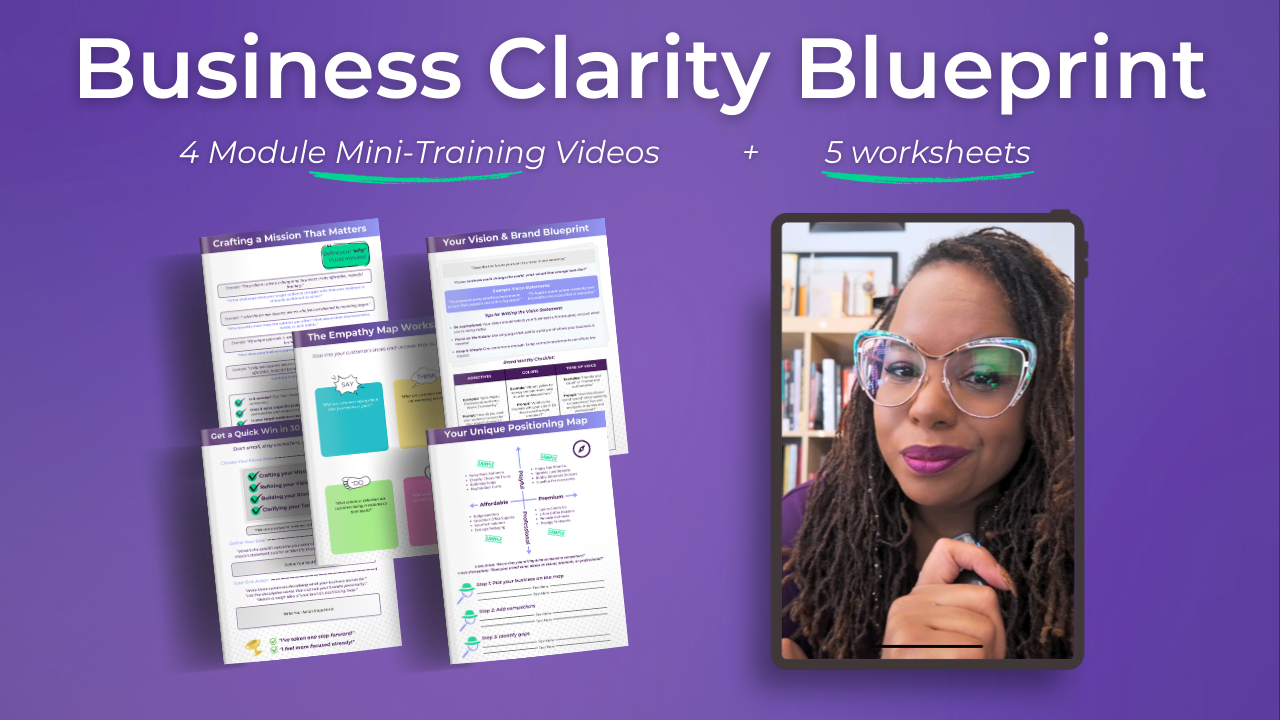 The Business Clarity Blueprint helps you define your mission, brand, and strategy to attract the right customers.